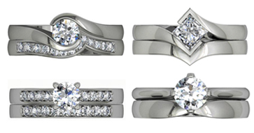 When trying to decide the style of your wedding band, there are a few important things to consider. Firstly, it's important that the band doesn't overpower the engagement ring or look out of place. A good place to start is matching the metal and width to your engagement ring. Sometimes the best option is to go for a very sleek look with little or no embellishment on the band. However if you want to add a bit of sparkle to your wedding band then it is important to reflect some design elements that were used in your engagement ring to tie the two together. You could use the same diamond cut, the same setting or if you have accent stones then make sure they start at the same place on the wedding band. Lastly, if you don’t like the idea of having a gap between your two rings then the wedding band can be designed with a curve to mimic the shape of your engagement ring.
